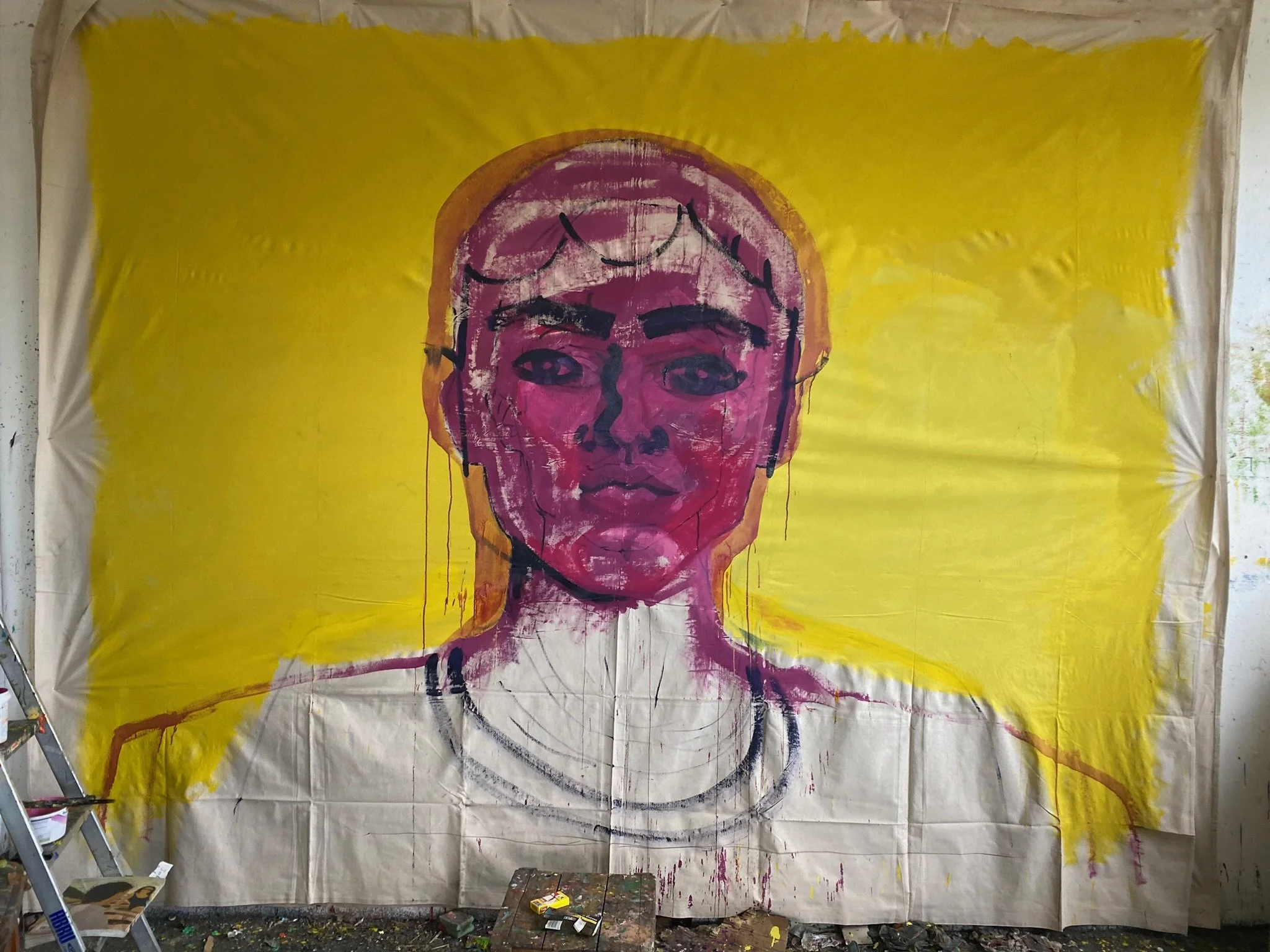 ONE OF THE PAINTINGS IN MY MIKA PUTTING ON A BELT SERIES